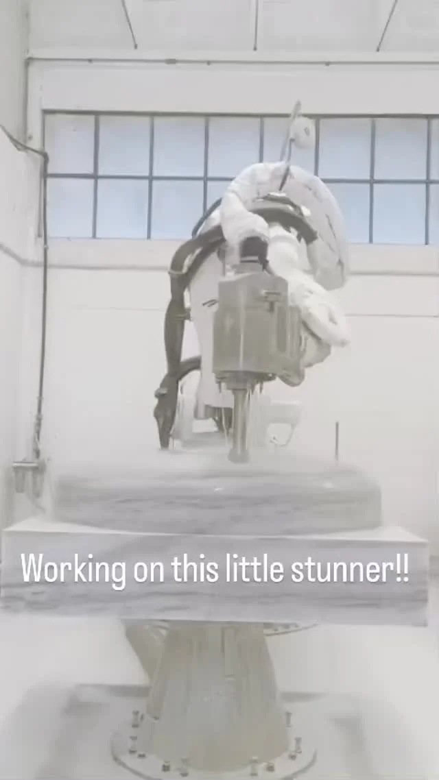 We begin by sourcing the raw marble from trusted quarries. Once the material arrives at our studio, we use an STL scan to direct our ABB CNC machine to rough out the piece. Artisans then begin the delicate work of transforming it into a unique piece of art. Using both traditional techniques and modern technology, every curve and detail is carefully carved and refined to perfection, ensuring that each piece has its own character and depth.